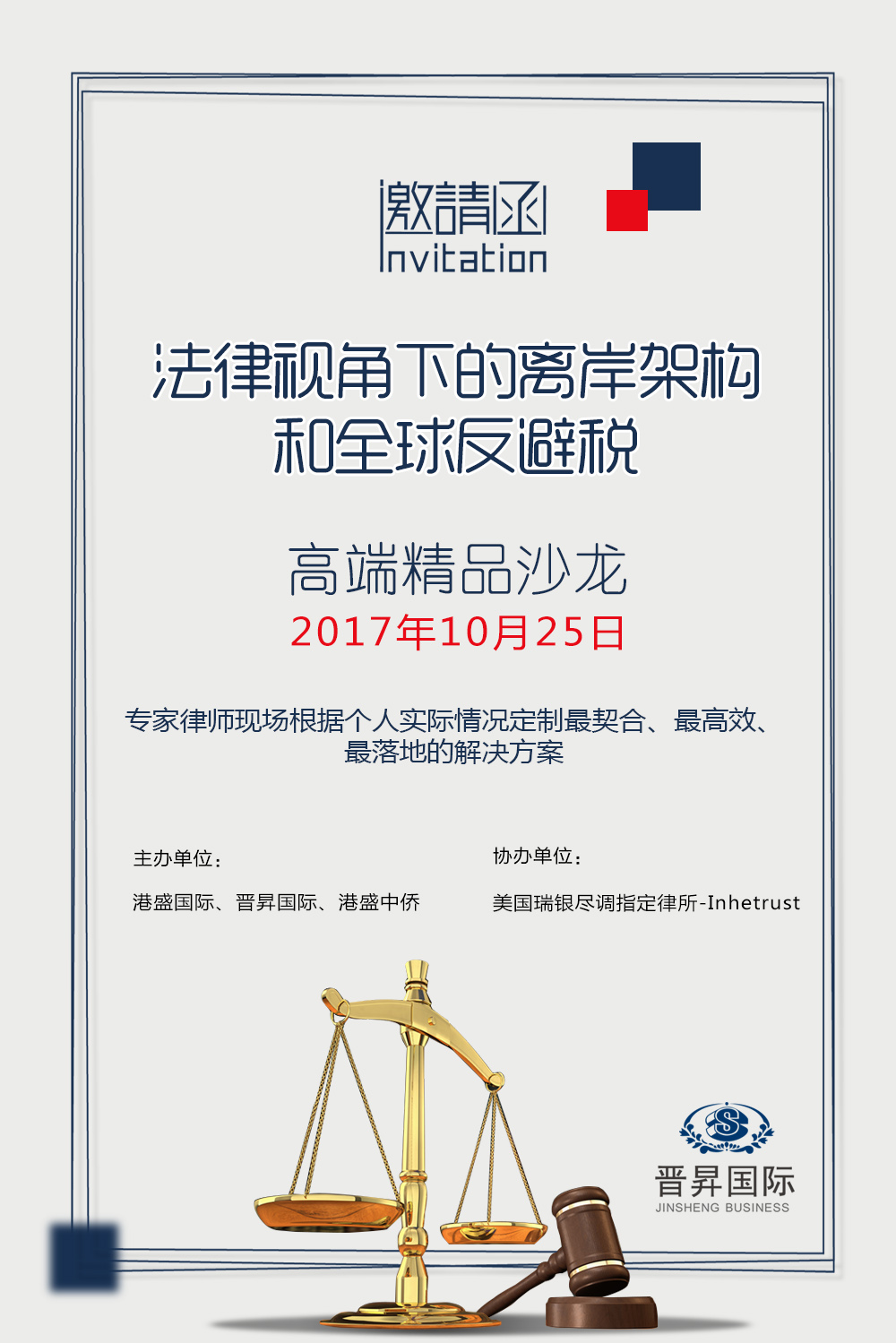 為了讓大家能夠從的法律視角了解全球反避稅趨勢、離岸架構(gòu)搭建新策略、境外稅務合理籌劃等內(nèi)容,我司整合實力雄厚、知名的律所資源,10月25日,將聯(lián)袂國際財富規(guī)劃聯(lián)盟(IWP)成員、美國瑞銀盡調(diào)推薦律所-Inhetrust重磅推出"法律視角下的離岸架構(gòu)和全球反避稅"精品沙龍。