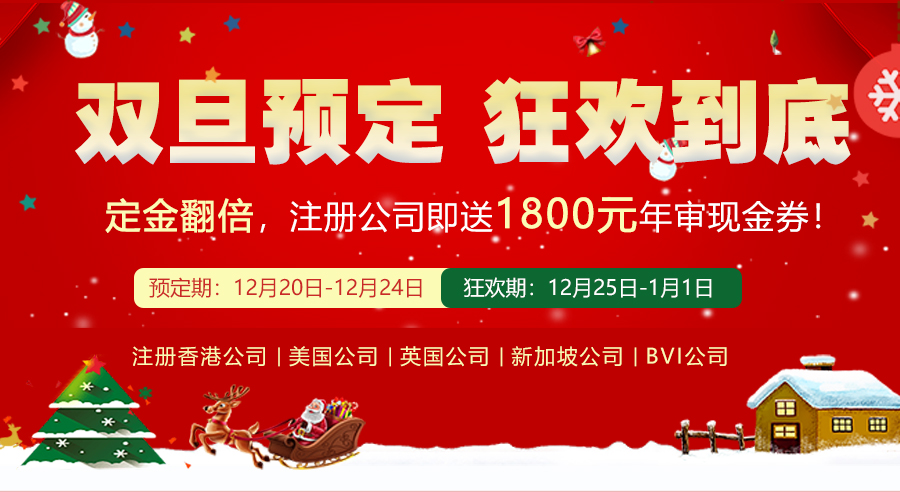 12月25日-1月1日,注冊中國香港、海外公司即送1800元年審現(xiàn)金券。