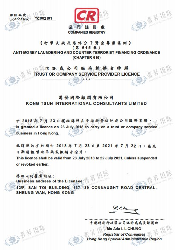 晉昇國際作為提供個(gè)性化離岸商務(wù)管理服務(wù)30年的離岸機(jī)構(gòu),已成功獲批中國香港秘書牌照!并始終堅(jiān)持「以誠為本,客戶至上」的原則為企業(yè)實(shí)現(xiàn)商業(yè)夢(mèng)想,領(lǐng)銜行業(yè)典范!