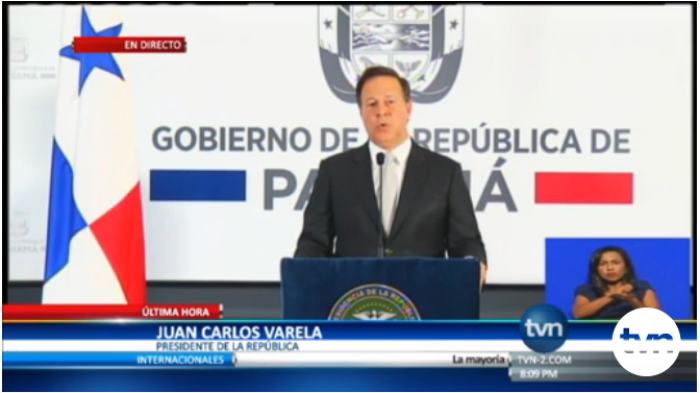 巴拿馬時(shí)間6月12日晚8時(shí),巴拿馬總統(tǒng)胡安·卡洛斯·巴雷拉(Juan Carlos Varela Rodriguez),在國(guó)家電視臺(tái)全國(guó)新聞聯(lián)播節(jié)目上,正式向全世界宣布:巴拿馬共和國(guó)與中華人民共和國(guó)建立外交關(guān)系。
