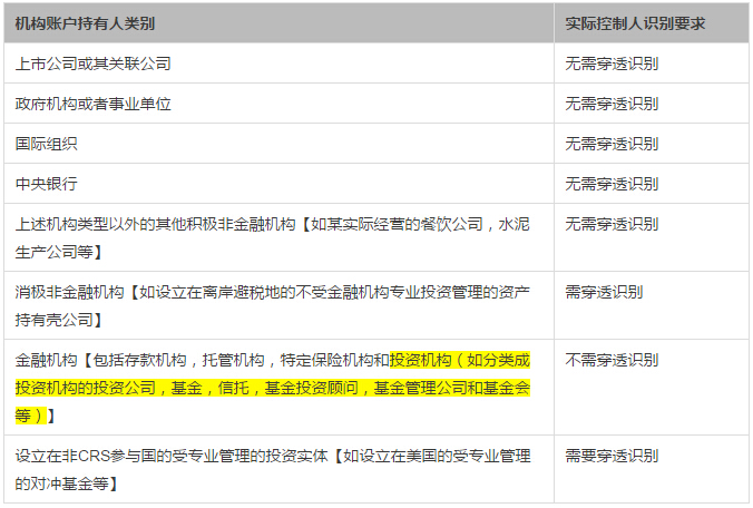 所謂殼公司為典型的就是在維爾京群島或是開曼群島開設(shè)離岸控股公司,然后再用公司在各家金融機構(gòu)開戶,持有境外的基金、股票等等。這類企業(yè)可能將被認(rèn)定為"消極非金融機構(gòu)"。CRS是穿透實施,公司實際控制人及公司兩個層面擁有的金融資產(chǎn)均要披露,過去利用殼公司的名義來避稅只怕是很困難了。