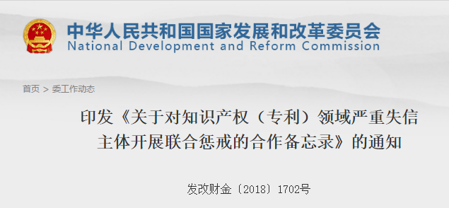 *以上嚴(yán)重失信行為的認(rèn)定依照《國家知識產(chǎn)權(quán)局關(guān)于開展知識產(chǎn)權(quán)系統(tǒng)社會信用體系建設(shè)工作若干事項的通知》(國知發(fā)管字〔2016〕3號)及其他相關(guān)文件確定。