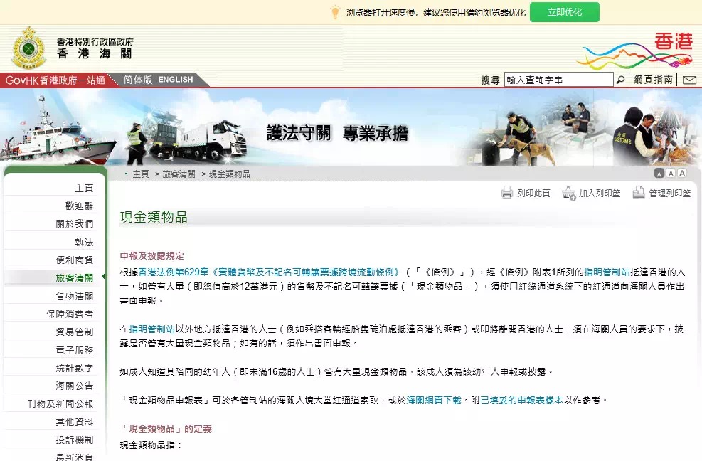 根據(jù)中國香港海關官網的信息,任何人若入境中國香港時身上攜帶總價值逾12萬元港幣(或等值外幣),均需向海關主動申報。