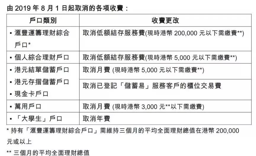 下圖是匯豐銀行取消的各項(xiàng)收費(fèi):