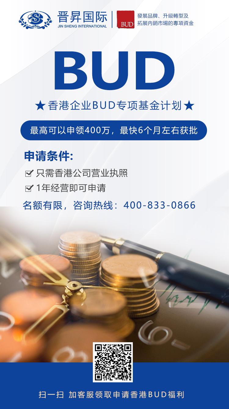 BUD,全稱發(fā)展品牌、升級(jí)轉(zhuǎn)型及拓展內(nèi)銷市場(chǎng)的專項(xiàng)基金。專為中小企業(yè),包括初創(chuàng)企業(yè),協(xié)助把握經(jīng)濟(jì)機(jī)遇和提升競(jìng)爭(zhēng)力。通俗的說任何有助個(gè)別中國(guó)香港企業(yè)透過發(fā)展品牌、升級(jí)轉(zhuǎn)型及/或拓展中國(guó)內(nèi)地及自貿(mào)協(xié)定經(jīng)濟(jì)體市場(chǎng)的項(xiàng)目均可申請(qǐng)資助。